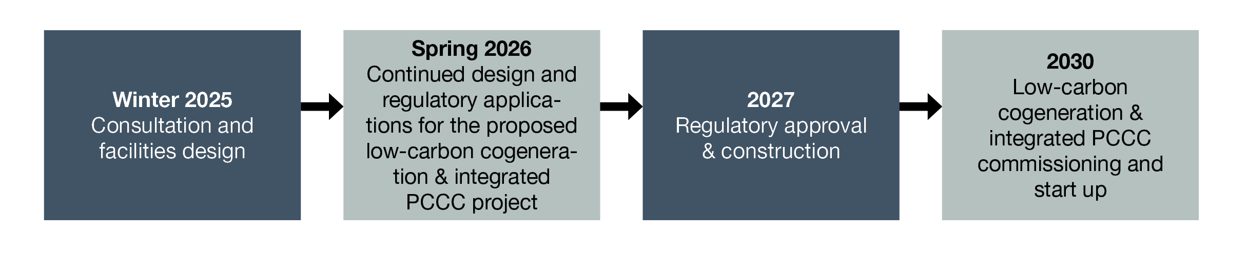 Subject to consultation and regulatory approvals, the proposed low-carbon cogeneration & integrated PCCC project will consist of: